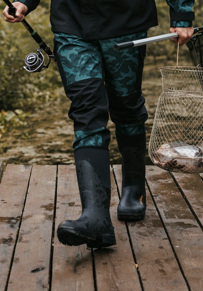 Верх и подошва выполнены из прочной резины, что обеспечивает высокую герметичность. Благодаря вставкам из эластичного неопрена сапоги удобно садятся по ноге, а специальная петля на заднике облегчает процесс надевания.