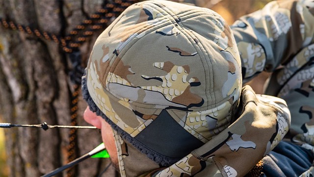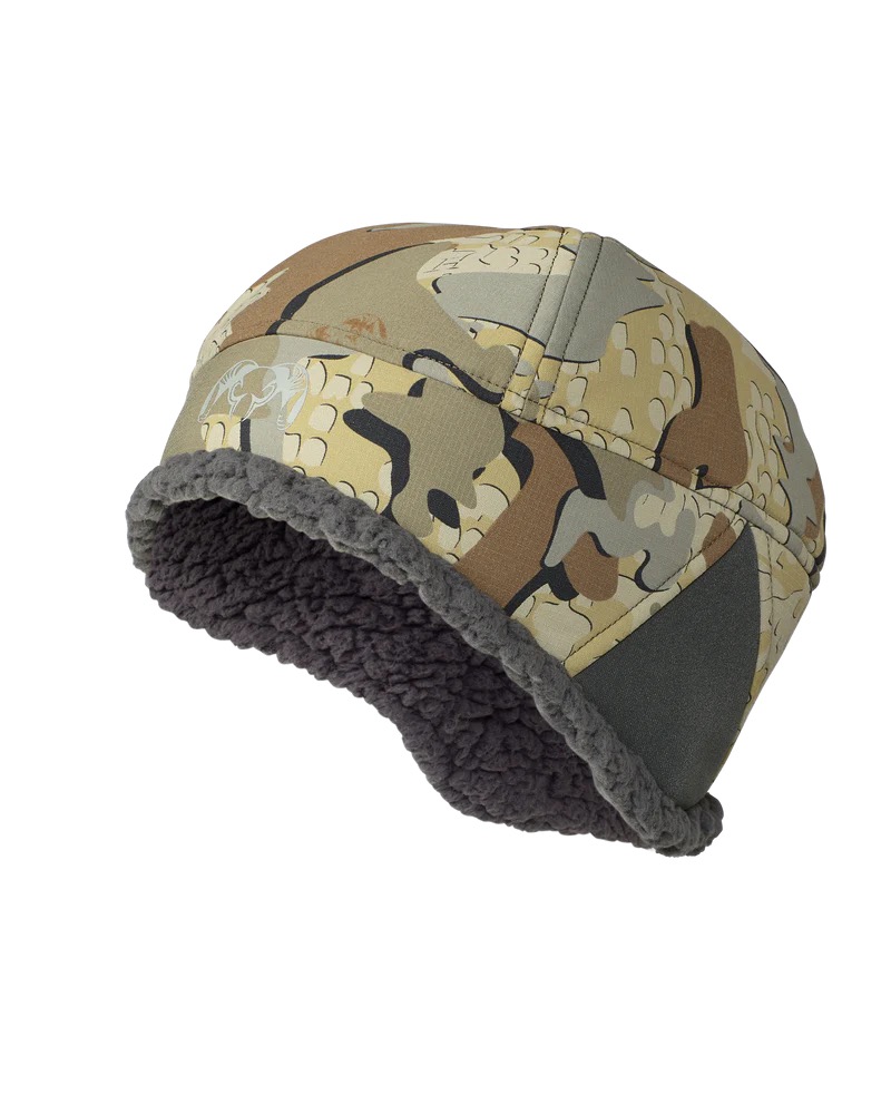 Шапка Kenai изготовлена из высокопрочной, эластичной нейлоновой ткани 70 x 80D Stunner Stretch с покрытием, обеспечивающим защиту от ветра и влаги. Внутренняя подкладка из высокообъемного флиса Sherpa делает шапку невероятно теплой и комфортной. Поскольку слух имеет решающее значение для успеха, мы использовали непокрытую ткань-саржу в области ушей для лучшего прохождения звука. Обладая всеми необходимыми характеристиками, шапка Kenai — обязательный аксессуар для охоты в конце сезона.